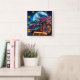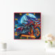Motorrad mit amerikanischer Flagge unter Vollmond Quadratische Wanduhr