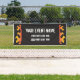 Motorrad- oder Biker-Event-Banner mit schwarzem Hintergrund, orangefarbener Flammenumrandung und individuellem Text für Kundgebung, Fest, Verkäufer, Rennen, Poker oder jedes Motorrad-Event.