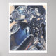 Schönes und sehr detailliertes nah-up zeichn eines Motorrades wird jedem, der Lieben zu fahren anziehen! Gebäude- und Landschaftsreflektionen sowie ein wenig Lenker des Fahrrads werden in der tiefblauen Hochglanzfarbe des Tanks festgehalten. Auch in der strahlenden silbernen Zierarbeit werden wunderschöne Reflexionen aufgenommen. Und Karo aus dem Tacho! Kannst du glauben, dass das in farbigem Bleistift gezeichnet wurde? Perfektes Geschenk für jeden Biker!