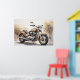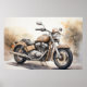 Poster eines klassischen Motorrads. Das erdfarbene Grün im Hintergrund verleiht dem Ganzen ein warmes, rustikales Ambiente.