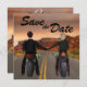 Diese einzigartige Save the Date-Einladung bietet eine wunderschöne felsige Landschaft mit einem Jungen- und Mädchenpaar auf Motorrädern, die Händchen halten. Der Junge hat braunes Haar und das Mädchen hat blondes Haar. Andere Haarfarbenkombinationen sind auf Anfrage erhältlich! Ideal für ein Bikerpaar! Passen Sie diese einfach Save the Date mit allen Details für Ihre Hochzeit an.
