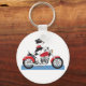 Ein cool aussehender Hund, der mit dem Motorrad fährt. Dieses Design sieht auf diesem Schlüsselanhänger wirklich effektiv aus