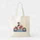 Ein cool aussehender Hund, der mit dem Motorrad fährt. Dieses Design sieht auf dieser Totbeutel wirklich effektiv aus