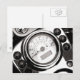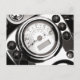 Ein schwarz-weißes, warmes Foto eines Motorrad-Tachometers.