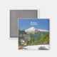 Der schneebedeckte Gipfel des Berges Bäcker steigt in den klaren blauen Himmel. Es ist ein sonniger Tag im Pazifischen Nordwesten. Unterhalb des Berges stehen immergrüne Bäume hoch vor einem kleinen See in türkisfarbener Farbe. Der Mount Baker, auch Koma Kulshan oder Kulshan genannt, ist ein bekannter Vulkan in den North Cascades von Washington Staaten. Bringen Sie mit diesem Magneten diesen landschaftlichen Blick auf die Kaskadengebirge auf Ihre Zuhause. Sie können den Text anpassen, um dem Magneten eine eigene Nachricht zu geben. Dieses Foto ist auch auf runden Magneten in drei Größen erhältlich. Genießen Sie die Wahl Ihrer Lieblingsart, um diese herrliche Landschaft zu genießen.
