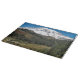 Auf diesem großen, dekorativen Glasschneidebrett, das ein malerisches Foto von schneebedecktem Berg Rainier und ihren landschaftlichen Tälern zeigt, kann man sich sicher ernähren.