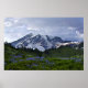 Sommerliche Wildblumen im Vordergrund schmücken dieses Foto des Rainiers. Dieses Plakat würde die Einrichtung jeder Zuhause oder jedes Büros verbessern.