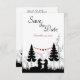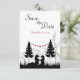 Bezaubernde Silhouette Mountain Bär Couple Save the Date Hochzeitskarten in Schwarz, Weiß und Rot.
