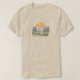 Ein T - Shirt mit Sonnenstrahlen über einer Gebirgslandschaft, mit dem Begriff "Break from the Grind" unter dem Bild zentriert. Das Design legt einen friedlichen und abenteuerlichen Ausflug vom Alltagsstress nahe, der Bilder von natürlicher Schönheit und Ruhe hervorruft.