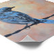 Gebirgsbluebirds sind in den Bergregionen Colorado und Wyoming in der Frühlings- und Sommersaison recht häufig. Die Männchen sind besonders farbenfroh, und die brillante blaue Streifen kann man kaum verpassen, wenn sie sich anstrengen. Dieses Bild stammt von einem originalen Ölgemälde des preisgekrönten Colorado-Künstlers Debra Mickelson.