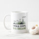 Fuel your ambition with every sip. This "Small Steps, Big Dreams" coffee mug features a unique mountain range illustration representing the journey toward success. With its muted forest greens and slate grays, the design depicts the realistic "peaks and valleys" of achieving greatness, reminding you that every small step counts. This mug is perfect for entrepreneurs, graduates, or anyone tackling a big project. The clean, modern aesthetic looks great on any desk and serves as a daily reminder to stay focused on the climb. Durable, high-quality, and designed for daily inspiration.