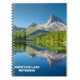 Spiral-Notebook mit Bild von Berg und See mit weißem Text "Mountain Lake Notebook". Ideal für Schulbesuch, Bürobesuch oder Zuhause.