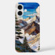Beautiful iPhone case featuring a serene mountain landscape design with soft clouds, deep blue sky, and detailed peaks. The artistic composition creates a peaceful and nature-inspired look that feels both calming and refined.