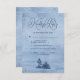 Diese moderne Hochzeitssuite in Aquarelltönen verbindet handbemalte Berge, See, Bäume und Vögel mit hellblauen Aquarellfarben mit blühenden weißen Tropfen, die an Schneeflocken erinnern, und auch Konfetti. Blau: hellblau, dunkelblau. Moderne Kalligraphie. Es ist ideal für Winterhochzeiten, Camping Hochzeiten, Hochzeiten im Freien.