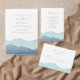 Elegant wedding design featuring a hand watercolor painted mountain landscape design by Shelby Allison. This design is currently available in blue, brown, green and purple.