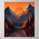 Mountain Sunset Reflection Fiery Orange Sky Poster