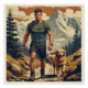 Mountain Trail Hiker & Dog Adventure Illustration Poster