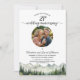 An elegant wedding anniversary invitation with watercolor mountains and pine trees and 1 special photo that you can customize with your details.