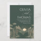 A beautiful and romantic sunset-in-the-mountains wedding faux foil invitation, featuring the glowing sun descending behind mountain peaks, clouds, birds in flight, a serene forest, and a peaceful lake. A stunning and unique wedding invitation perfect for nature lovers, adventure seekers, and couples who adore mountains, camping, and the great outdoors.