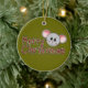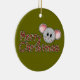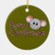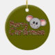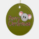 Eine kleine graue Maus und rot-grüner Bonbons gestreifter Text, der "Frohe Weihnachten" auf einem Halb-Sake-Urlaubsornament, dass Sie die Form der vor der Bestellung ändern können.