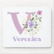 Das Design bietet Monogram & Name mit Blume beiderseits in einem pastellfarbenen Aquarell-Stil. Beispielname ist Veronica. Kann für jeden sein, der einen Namen hat, der mit V beginnt.