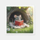 A gray mouse wearing glasses is reading a red book titled "Mouse Tales" while sitting on a fuzzy blanket