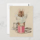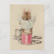 Diese Postkarte ist eine Reproduktion einer Vintagen Illustration, die eine Maus zeigt, die eine Zeitung mit dem Titel "Der Schneider" liest, während sie auf einem Thread sitzt, mit Schere und einem Klecks im Hintergrund.