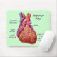 Vordere Sicht auf das menschliche Herz mit einigen Teilen beschriftet.