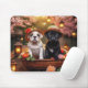Mousepad mit bezaubernden Welpen, die in einem Boot von einem See umgeben von schönen Blumen sitzen