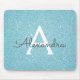 Aquamarines Aqua Blue Sparkle Glitzer Monogram Name Mousepad. Dieses Mousepad kann auf Ihren Vornamen angepasst werden.