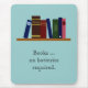Bücher im Regal. Unten zeichne der Text "Bücher ... keine Batterien erforderlich".