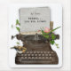 Kluges Schreibmaschinenbild mit einer Touch von zugesetzter Peitsche mit Vogel- und Blumenakzent. Passen Sie Ihre persönliche Nachricht an.