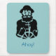 Scruffy Segler in Slicker ist am Steuer. Darunter steht der Text "Ahoy!"!