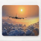 Mousepad mit schönem Bild eines Flugzeugs über den Wolken mit einer schönen Sonne fliegend