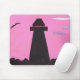 Dieses Mousepad wurde mit einem silhouetted Leuchtturm gegen einen rosa Sonnenuntergangshimmel entworfen.