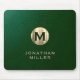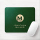 Fügen Sie Ihrem Arbeitsbereich mit diesem modernen mit Monogramm Mousepad eine Touch von Eleganz hinzu. Das Design besticht durch ein goldfarbenes, metallisches Anfangsemblem auf luxuriösem Hintergrund. Passen Sie den Namen unter dem ursprünglichen in klassischer Blocktypografie an. Dieses Mousepad wird ein großartiges Geschenk für sich selbst oder einen Freund.