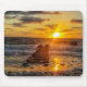 Individuell gestaltetes rutschsicheres Mousepad. Mousepad verfügt über eine Szene mit Sonnenaufgang und Wellen, die über einem Steg abstürzen. Die Farben des Sonnenaufgangs reflektieren auf den Wellen, wenn sie zum Surfen gelangen.