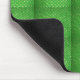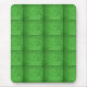 Die Crochet-Stich in Grün und Gelb erzeugt ein gefliestes Bild, das wie ein weich getuftes Kissen aussieht. Die Naht bildet ein grünes Netz mit gelbem Futter.