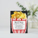 Große Tüte Popcorn, gekennzeichnet mit Ihrem eigenen Text. Phantastische Sleepover oder Kinoabend Party Individuelle Einladungen, in Schwarz, Weiß, Gelb und Rot. Rot-weiß gestreifte Popcornbox mit gelbem Popcorn und schwarz-weiße Lichtstrahlen im Hintergrund Anpassen Sie den Pop Maiswanne mit Ihren Party-Informationen. Eine großartige, einzigartige Party Einladung für den Geburtstagsjungen, das Mädchen oder jeden Anlass!