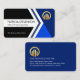 Overleaf, the dark blue color is brought over front the front face of the card. Card details are over on the left with the gold logo at the top followed by your prestigious name and the contact details.