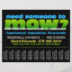 Augenfänger Flyer, um Ihnen zu helfen, Arbeit zu finden und zusätzliches Geld in der Rasenpflege zu verdienen. Kühne, helle Briefe, die auf einzigartige Weise Aufmerksamkeit erregen: "Braucht jemand zum Mähen?" Passen Sie den Text in dieser Vorlage an, um ihn an Ihre spezifischen Bedürfnisse anzupassen. Schneiden Sie zwischen den Zahlen, die die Leute nehmen und anrufen können, nach Belieben. Hängen Sie diesen Flyer in den Bereichen Geschäfte wie Delis, Bibliotheken, Supermärkte, Parks, Pizzerias etc. Dies ist die Saison, um wirklich Ihr Geschäft zu fördern!
