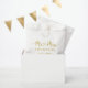 Elegante, maßgeschneiderte Hochzeitsgeschenke beinhalten ein modernes und minimales "Mr. and Mrs."-Design in der Herzkalligraphie-Schrift mit einem Monogramm des Nachnamens des verheirateten Ehepaares und dem Hochzeitsdatum in einem personalisierten, stilvollen Text, zusammen mit einer einfachen Dankesbotschaft an die Gäste. Beachten Sie, dass das Farbschema Gold und Weiß an Ihre Hochzeitsfarben angepasst werden kann.