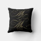 Elegante klassische Imitate Gold Drehbuch Mr. und Mrs. Hochzeit solides schwarzes Kissen personalisiert mit Nachname und Hochzeitstermin.