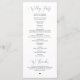 Neu Mr. und Mrs., Elegante moderne Kalligraphie, Schwarzes Drehbuch, Hochzeitskirchenfeier Programm in Karte (lang). Es ist mit Scrollakzent entworfen, der personalisiert werden kann mit benutzerdefiniertem/personalisiertem Text für Ihr Brautparty, Zeremonie Details, Gedenkhinweise und Dankeschön-Nachricht.