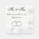 Hochzeitsserviette mit der Überschrift "Mr. & Mrs." Der Name der Braut und der Name des Bräutigams sind zusammen mit dem Datum anpassbar. Unten ist ein Doppelring-Bild.