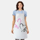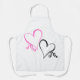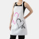White apron for him and her with two hearts, pink and black