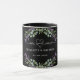 Dekoriert mit mehr mrs mit einem Herz. Personalisieren Sie Ihre Namen und fügen Sie sie hinzu. Schwarzer Hintergrund, weißer Text. Mit Lavendel-Blume und Eukalyptusgrün dekoriert.