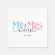Celebrate your holy matrimony with this cute Mr. and Mrs. wedding party napkins for newlywed couples. Customize it by adding your last name / surname and wedding anniversary year date. Pink, blue and black elegant font with heart shape. Great for a bridal shower or anniversary / wedding reception dinner party for a husband and wife.