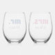 Mr & Mrs. Personalisiert Wedding Chic Stilvolles Blau und rosa Script Stemless Wine Glass. Feiern Sie Ihre besonderen Momente mit diesem exquisiten Paar nahtloser Weingläser, elegant personalisiert mit einem "Mr. and Mrs." Monogramm. Diese gläserne Brille ist perfekt für Hochzeiten, Jubiläen oder romantische Anlässe geeignet und verbindet modernes Design mit zeitlosem Charme. Jedes Glas verfügt über ein schön graviertes Monogramm, das eine persönliche Touch hinzufügt, die jeden Toast unvergesslich macht. Machen Sie Ihre Feiern mit diesen einzigartigen und durchdachten Festen noch attraktiver.