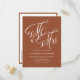 Diese individuell gestaltbare Terracotta Hochzeit Einladung Postcard bringt eine perfekte Mischung aus rustikaler Eleganz und modernem Komfort. Mit "Mr. and Mrs." in schöner rustikaler Kalligraphie. Personalisieren Sie diese durch Hinzufügen von Namen, Datum, Uhrzeit, Ort und anderen Details. Diese kalligraphische Hochzeitseinladung Postkarte ermöglicht es Ihren Gästen, einfach auf die Veranstaltungsdetails zuzugreifen, UAWG oder Ihre Hochzeitswebsite mit einem personalisierten QR-Code einzusehen. Ob Sie eine rustikale Hochzeit oder eine moderne Hochzeit veranstalten, diese individuell anpassbare QR Code Hochzeitseinladung fügt Ihrer Feier eine persönliche und praktische Touch hinzu.